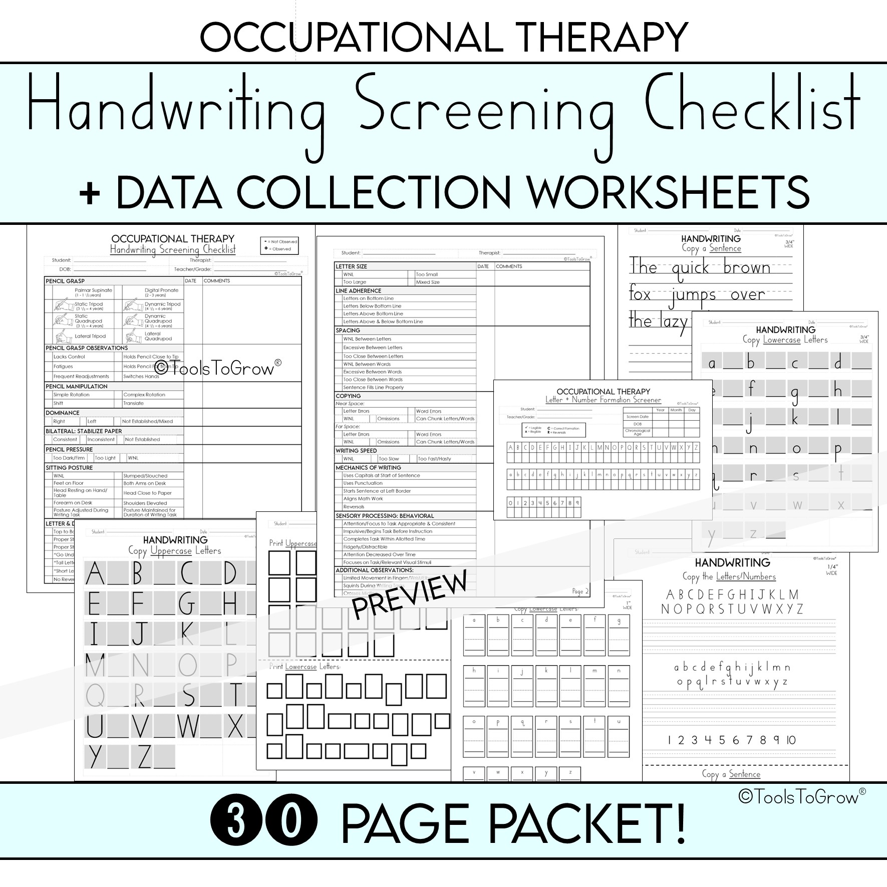 OT Handwriting Screening Checklist + Data Collection Worksheets